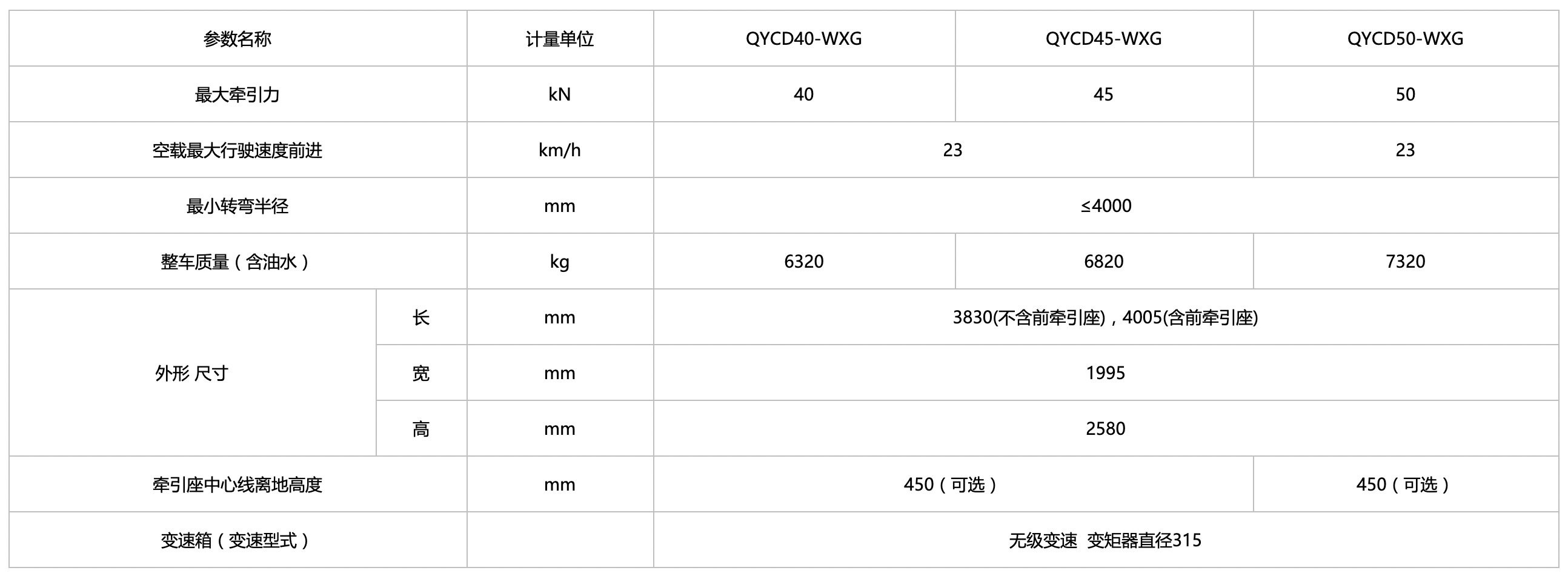 QYCD40/45/50-WXG型 G系列4-5t內(nèi)燃牽引車是安徽合力股份有限公司研制的具有國(guó)內(nèi)水平的新型柴油液力傳動(dòng)牽引車。是原合力3.5-5t內(nèi)燃牽引車的升級(jí)換代產(chǎn)品。整機(jī)可靠性、安全性、維護(hù)維修性及人機(jī)工程等性能都得到很大提高。整車充分利用了本公司成熟的設(shè)計(jì)、制造技術(shù),整機(jī)由車身系統(tǒng)(含配重)、動(dòng)力系統(tǒng)、傳動(dòng)系統(tǒng)、變速操縱系統(tǒng)、行車制動(dòng)系統(tǒng)、油門操縱系統(tǒng)、轉(zhuǎn)向系統(tǒng)、電氣系統(tǒng)、前、后懸掛、轉(zhuǎn)向橋、驅(qū)動(dòng)橋、牽引銷機(jī)構(gòu)、駕駛室等部分組成。該車成本低、可靠性高,以其合理的性價(jià)比,廣泛應(yīng)用于港口、郵政、機(jī)場(chǎng)、工礦企業(yè)等作業(yè)場(chǎng)合。