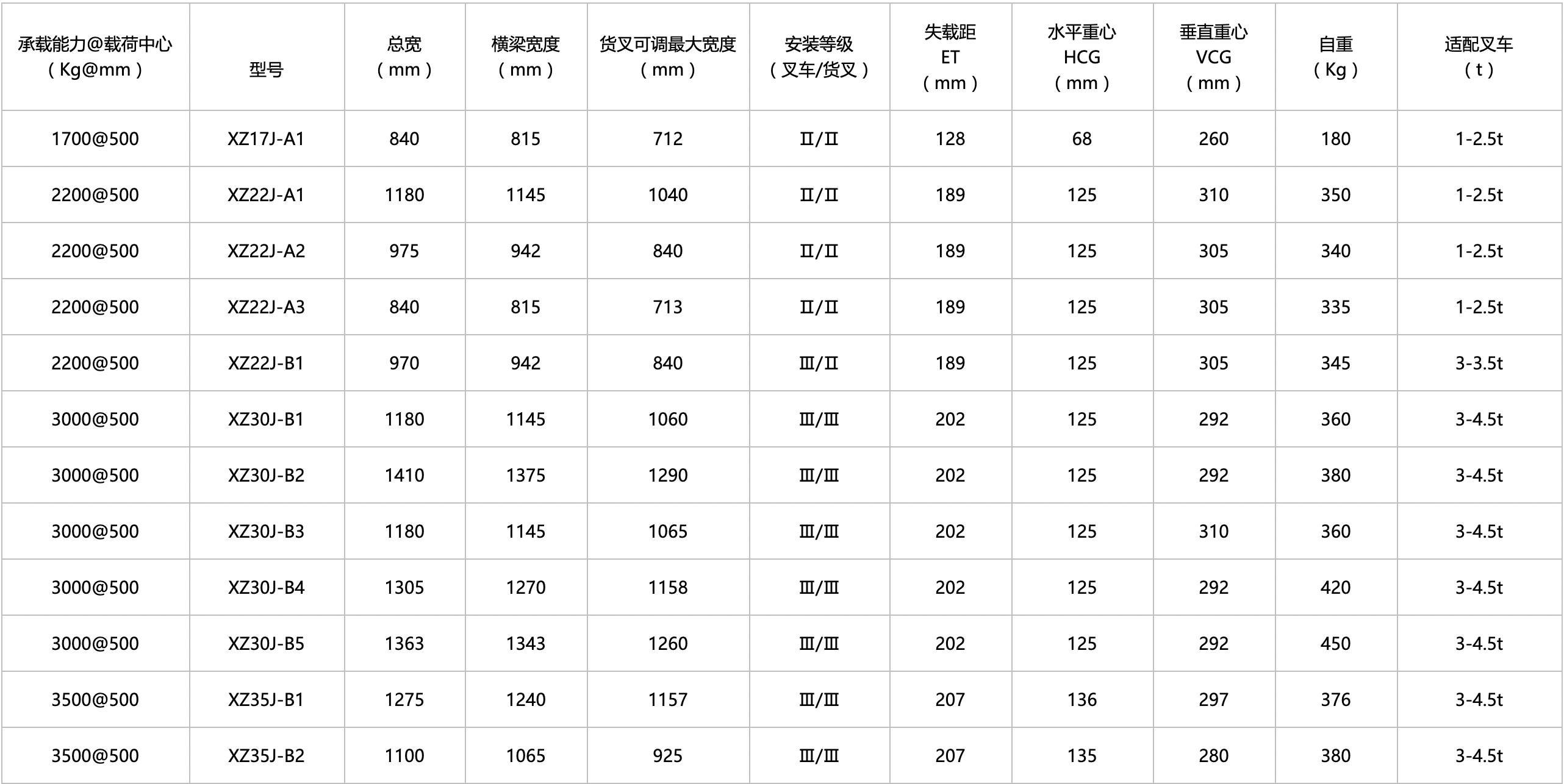 注:1、實(shí)際的叉車屬具綜合承載能力請(qǐng)從叉車主機(jī)廠獲得;